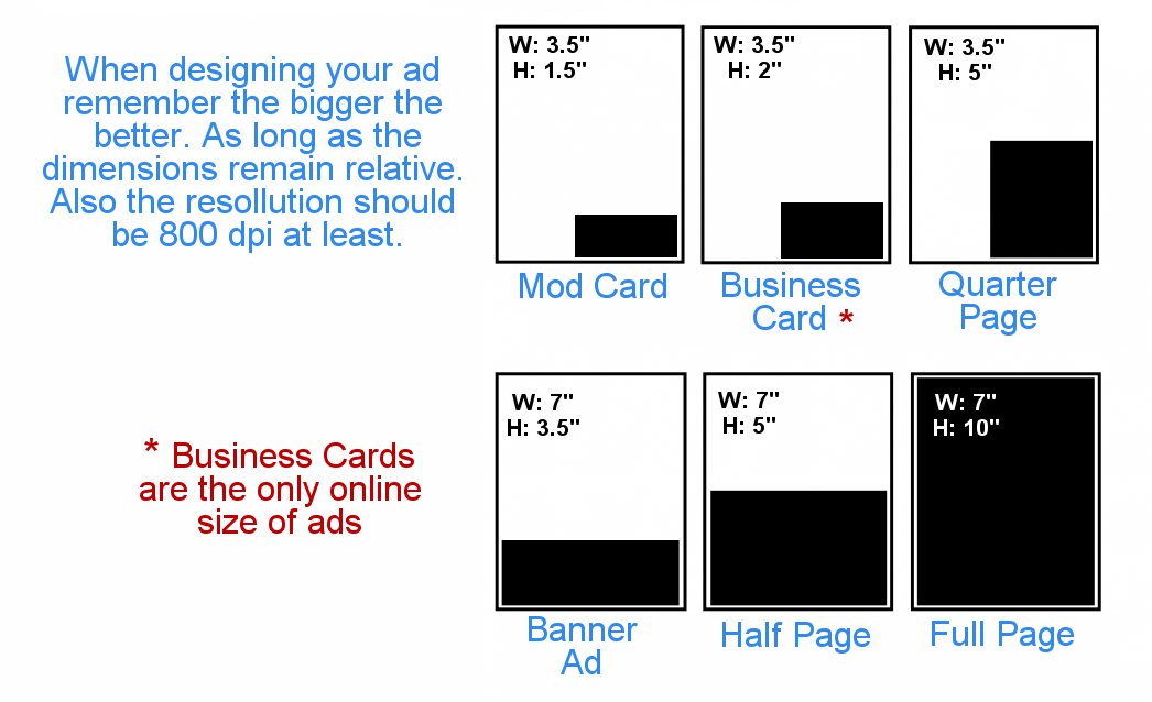 If you do not have camera ready artwork available we will be pleased to design an ad for you.